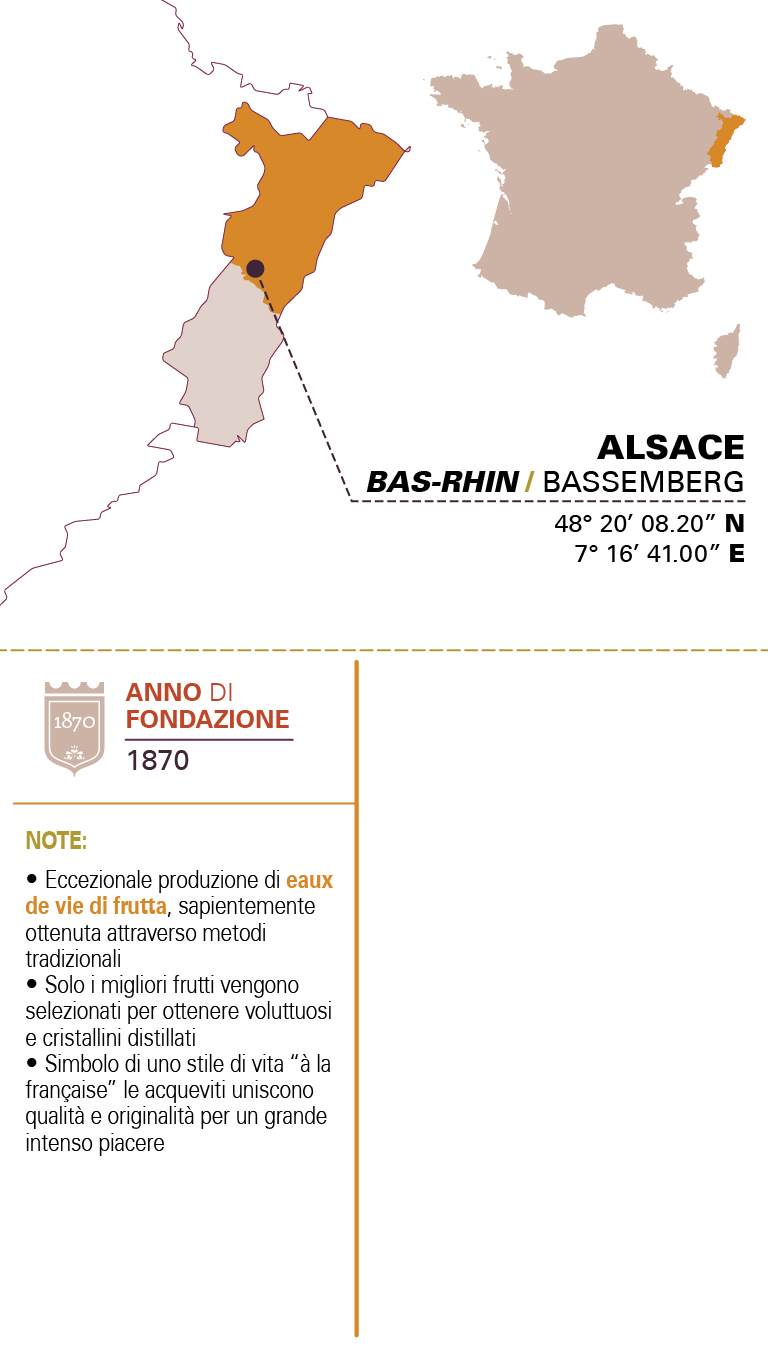 • ABBINAMENTIUn sorso di Eau-de-vie de Kirsch Vieux di Massenez a fine pasto può agire come piacevole digestivo, lasciando una piacevole chiusura dolce, con leggeri accenni di mandorla. Oppure gustato come distillato da meditazione. Davvero intrigante.