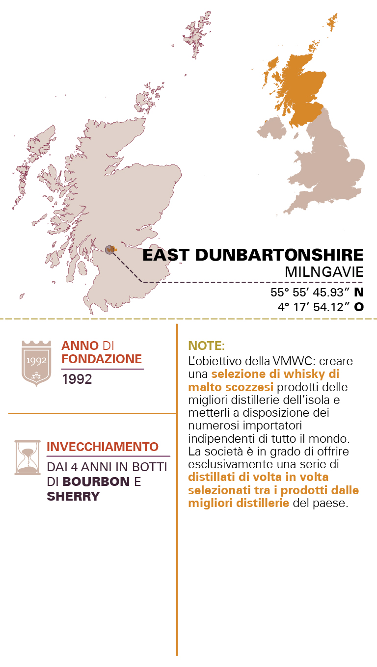 • NOTEL’obiettivo della VMWC: creare una selezione di Whisky di malto scozzese, prodotti dalle migliori distillerie dell’isola e metterli a disposizione dei numerosi importatori indipendenti di tutto il mondo. La società è in grado di offrire esclusivamente una serie distillati, selezionati di volta in volta, tra quelli prodotti dalle migliori distillerie del paese. La VMWC offre inoltre la possibilità di Private Label anche in piccoli lotti.