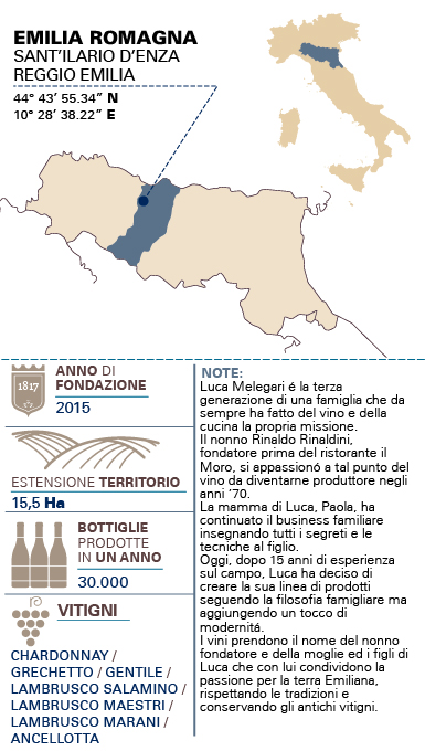 • ABBINAMENTITipico spumante giustamente evoluto adatto a tutto pasto, ma è l’abbinamento ideale con scaglie di Parmigiano-Reggiano come aperitivo.