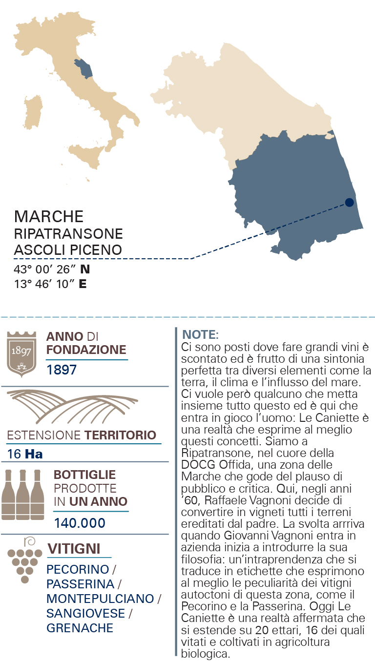 • ZONA PRODUTTIVARipatransone (AP), Contrada Canali, tra i 280 e i 400 metri d'altezza.