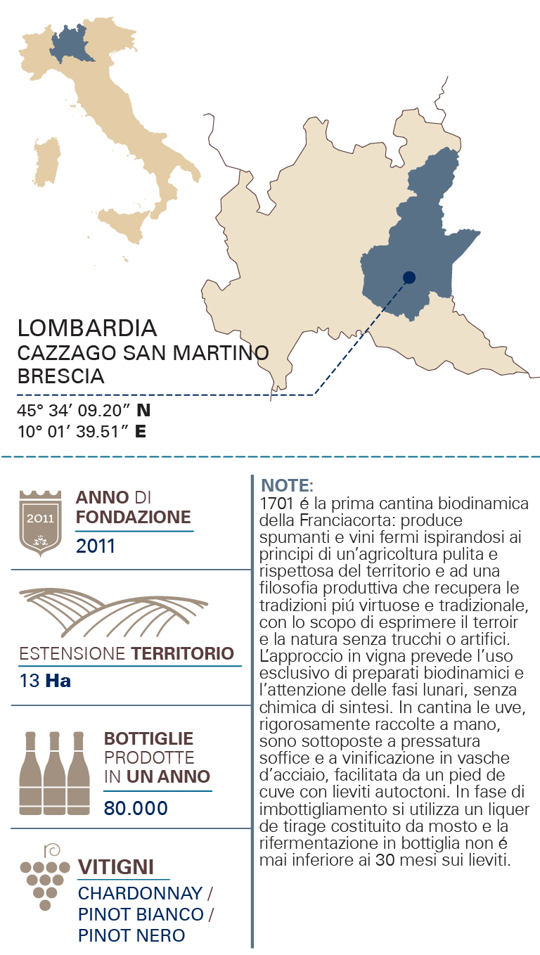• VINIFICAZIONEDopo la vendemmia, a mano, con scrupolosa selezione dei grappoli, la vinificazione delle uve si effettua per i primi 9 mesi in vasche d'acciaio o anfore di terracotta con l'utilizzo di lieviti indigeni. Segue la rifermentazione in bottiglia con il mosto delle stesse uve, secondo il metodo Classico, per almeno 12 mesi.