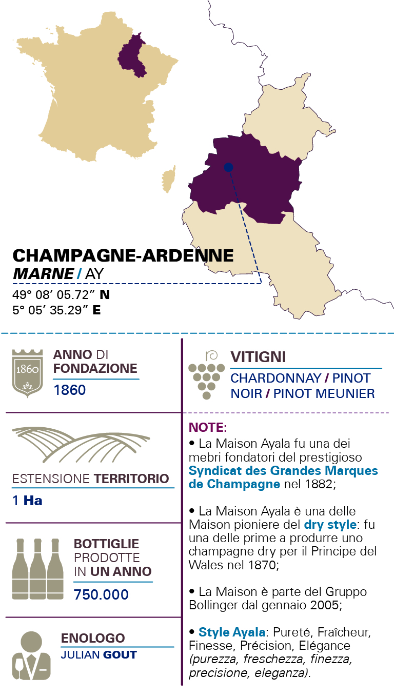 TIPOLOGIAAOC Champagne ZONA PRODUTTIVA70 Cru provenienti dagli 8 grandi Terroirs di Champagne: Côte des Blancs, Montagne de Reims, Vallée de la Marne, Massif de Saint-Thierry, Montgueux, Sézannais, Vitryat, Côte des Bar. VITIGNO30% Pinot Noir, 55% Chardonnay, 15% Meunier VINIFICAZIONEMicro-vinificazioni in 120 piccoli tini in acciaio inossidabile: ogni Cru, ogni varietà di uva e ogni annata vengono vinificati separatamente per rivelare le caratteristiche aromatiche dei Terroirs. COLOREOro chiaro, perlage abbondante e fine. PROFUMOAperto, espressivo e delicato. Si sprigionano note di agrumi, di fiori e di frutti a polpa bianca. ABBINAMENTIChampagne d'aperitivo per eccellenza, il Brut Majeur si accompagna armoniosamente a tutto pasto. Ideale con pesce, crostacei, volatili o piatti di formaggi. SAPOREE' equilibrato, freschezza e vinosità si bilanciano. Si rivela schietto, fruttato con un bel finale persistente. INVECCHIAMENTOVini di riserva: 42%. 3 anni di affinamento sulle fecce fini. Dosaggio: 6 g/L