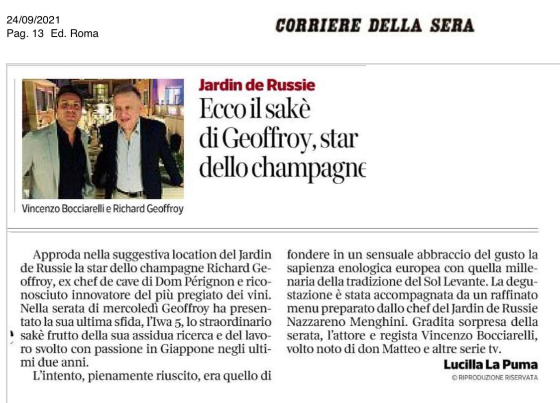 Ecco il Sakè di Geoffroy, star dello champagne. Corriere della Sera Leggi di più